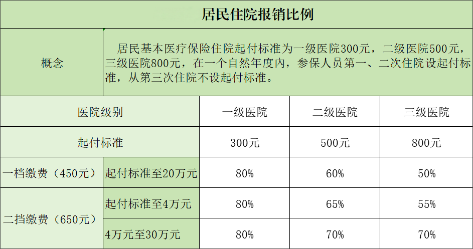 备注:报销比例均按照合规费用(即扣除不符合报销目录规定的费用)的百分比报销。