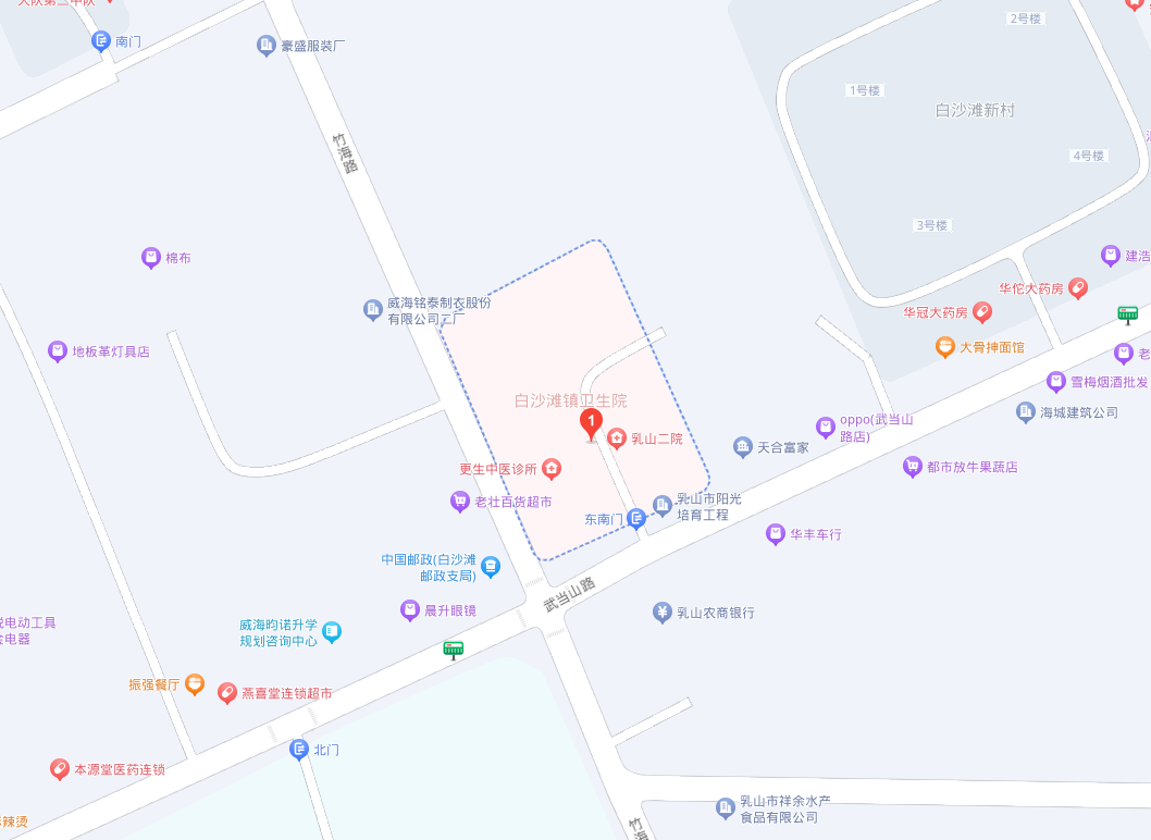 乳山市人民医院滨海新区院区 联系方式:0631-6773120 地址:威海市乳山市白沙滩镇大陶家村东庐山路(深蓝小城向东100米) 乳山市白沙滩镇卫生院院区 联系方式:0631-6723053 地址:威海市乳山市武当山路9号 两个院区皆设立“一站式服务中心”,群众有任何问题都可在此咨询。