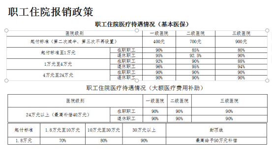 备注:一个自然年度內,第一次住院设置全额起付标准,第二次住院减半设置起付标准,从第三次住院不设起付标准,超过起付标准部分分段设置报销比例。纳入职工基本医疗保险支付的住院费用最高支付限额为24万元。超过24万元部分的政策范围內住院费用纳入职工大额医疗费用补助保障,年度最高补偿40万元。参保职工在各级中医院住院保障待遇的起付标准和支付比例按低一个级别医院的标准执行。 三、医保工作站业务