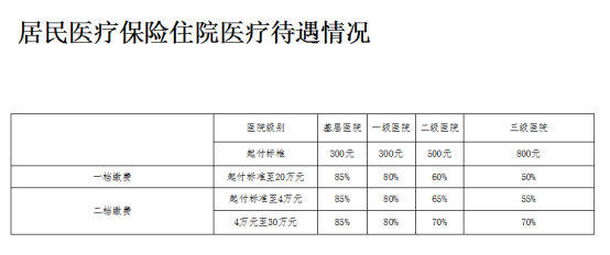 备注:在一个自然年度内,参保人员第一、二次住院设起付标准,从第三次住院不设起付标准。