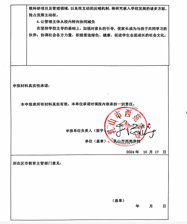 学校依托顶层设计,从“强化作业组织保障、健全作业设计研训、构建五育并举模式、深化多元主体评价”四个方面迈向综合素养的全面发展。 1.从评价性到发展性。注重大单元作业的发展性作用,将培养学生全面发展、提升学生综合素质、培养学生核心素养摆到更加重要的位置。首先要保证作业的量适中,作业布置量符合国家文件的相关要求,确保学生充足的休息时间;其次要让大单元作业的设计合理化、多元化。单元作业的形式不单单包括文本作业,同时可以辅助一些实践类活动。例如:教师可以通过爱国主义教育类作业来帮助学生树立正确的价值观;通过一些手工类的作业来培养学生的思维能力;通过一些每日打卡作业来培养学生坚持的品格,促进其自我规划能力的提升。 2.从单一性到多元性。首先,要从布置分层、弹性、个性化的作业入手,就是着眼于学生的个性化发展。针对不同学生个体,要将其按照一定的标准进行分层的作业制度。在作业难度、数量、类型上进行调整,使之更适应不同群体学生的发展需求,更具有针对性。其次,重视学生的全面发展,重视其核心素养的培养提升,大单元作业的布置就要做到多样化,能够从不同的角度促进学生的发展。 3.从随意、割裂性到严谨、系统性。通过单元教学设计及单元作业设计,增强作业育人功能,目标一致,设计科学,结构合理,难度适中,通过单元作业完善学生的整个知识体系,帮助学生构建知识网络,有效促进单元教学。 4.从管理无标准到可视化管理。落实中心作业“441”模式,即作业设计环节分4层、作业批改环节分4步,作业规范环节4分点,作业保障环节分4步,最后建立1个精品单元作业资源库。 三、教学改革任务: 我校从“威海市国家级义务教育教学改革试验区专项课题指南”中,结合自身实际,依据研究方向选择了第二方面——市域教学方式变革行动研究中的“14.基于核心素养的单元作业设计与实施行动研究”作为本次教学改革任务。 四、重难点突破: 单元作业的设计与实施指向教师作业理念的转变,聚焦于学生学习力的提升,它们既各自独立,又相互联系。而且因为受各种条件限制,如很多课外实践性的作业,有些需要学生集体或者小组活动完成的作业,鉴于需要家长的配合,学生安全等各方面的考虑,会妨碍作业的设计和布置,仍不敢放手去做。因此,激发教师的实践力,提升学生的学习力是我校目前最需要突破的重点和难点。 五、校本教研: 聚焦“学为中心”主题,通过实施学科教研行动、作业库建设行动,广泛调动教师认真研读新课标、学习新理念,将作业作为学校学科建设的核心产品, 强化学科教研,不断提升教师的专业水平。 (一)研讨先行,共生提质智慧。 基于新课标、大单元教学等理念,落实每周“1+2”两次教研:一次教研组活动、两次集体备课,其中作业研讨是必备板块。 ①深化作业设计研究,把作业设计能力作为教师基本功。一是学期初,教研组工作计划设定每次教研活动的作业研究主题和目标。二是备课组研讨主要以具体内容为切口,以“初备—集备—二次备课—布置”为基本环节,确保作业落地前“经历”科学设计。 ②明确作业评价任务,把有效评价作为驱动改革的指挥棒。教研组尝试推进表现型评价,如针对实践性作业、研究型学习作业等类型开展表现型评价。备课组研讨作业评价的具体内容,反馈批改率、批改形式、目标达成等内容,沟通教情、班情,做到有的放矢。 (二)体系建设,助推高效实施。 加强以单元为基本单位,将课时作业进行整体设计与统筹分配,从中观角度促进教师宏观把握学科课程整体要求,避免从微观角度仅仅把握某个课时而形成的割裂现象。这样既便于教师对教学内容进行系统的思考与分析,也利于学生更好的开展结构化的深度学习。立足学生实际,整合知识板块,重组学习内容,积极完善基于学情的作业体系建设。 ①教研活动主研单元作业:认真进行单元规划,制定单元教学目标,确定单元教学内容,拆解作业目标, 立足各年级、各单元情况,关注其纵向衔接与横向关联。②备课组主研课时作业。深研“选编”“改编”“创 编”习题设计,关注资源的合理利用。 作业改革,不能用成套的作业去“喂养”教师,而是要通过提供成熟的作业个案去“激发”教师投身作业改革,从而在迭代升级中拉高区域作业研究的基础水平。重点抓好 “课后服务课程”“‘五定四要’集体备课”(“五定”即定主题、定时间、定地点、定主备、定领导参与者。“四要”即要加强课程标准的深入学习;要细化集体备课操作的基本流程;要物化成果,形成高质量的教案集、学案集等学科资源库;要跟踪听课,检查备课与上课内容的一致性)、“四维课堂建设”(“四维”:教师维度、学生维度、课程标准与教材维度、技术维度)、“作业研发”(围绕学科核心素养,着力开发符合学情的校本作业)四个项目,整体推进学科建设,以提升学科教学质量,为作业改革护航。 六、工作机制: 学校建立了作业动态化过程管理机制,建立了校级、教务、班组(年级组、教研组、班主任)三级管理层次,加强作业的检查、反馈、指导工作。学校分学段设计并使用《作业监控反馈表》和《作业监控评价单》,每周在各年级学生、家长中抽样调查完成作业的时间和质量,级部领导分析本周作业完成情况,进行总结评